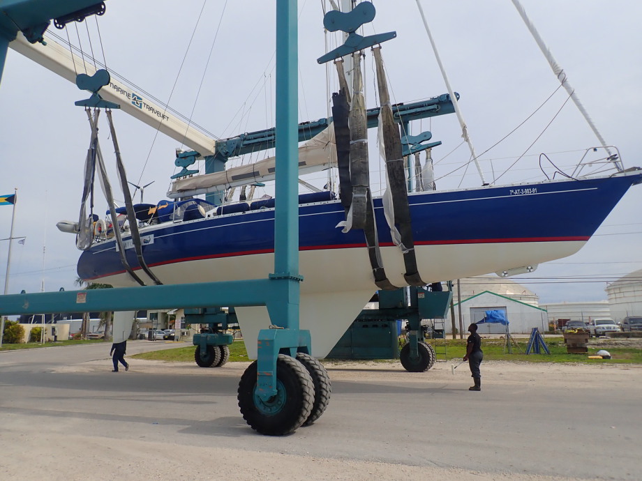 Nous avons retrouvé Diatomée début avril à Grand Bahama Freeport, au chantier Bradford Marine où nous l’avions laissé presque 3 mois. Un oiseau avait fait son nid dans la grand voile et j’ai été ravie d’imaginer Diatomée en clinique de naissance pour oiseau :-)