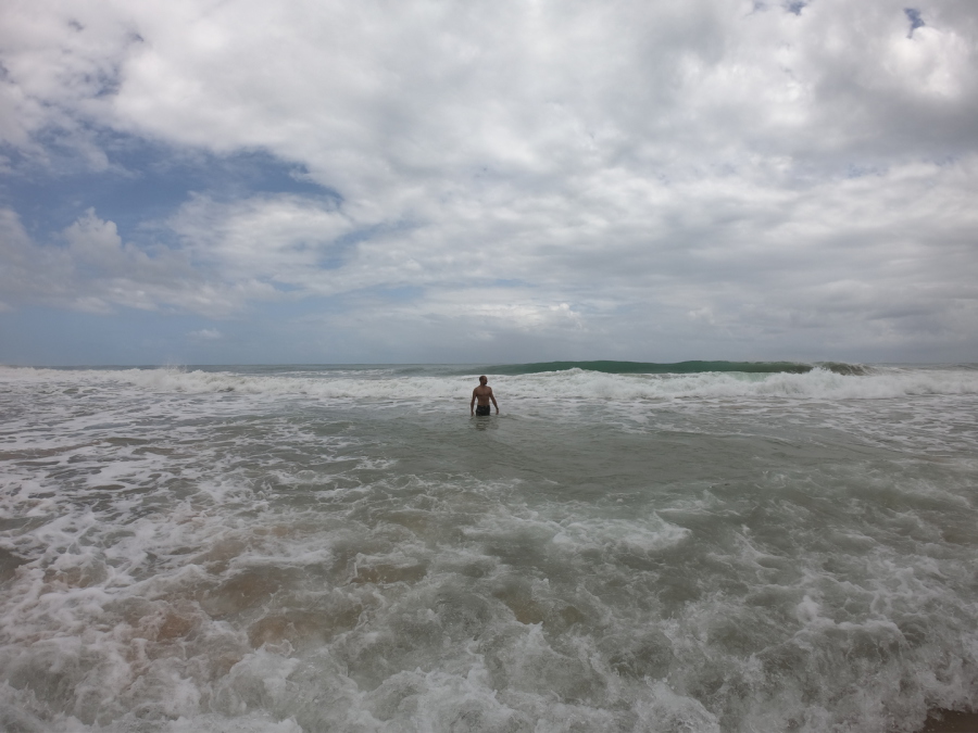 À la playa (Tu) Bluff (Martoni) nous ne nous sommes baignés que dans les rouleaux car il y a des forts courants.