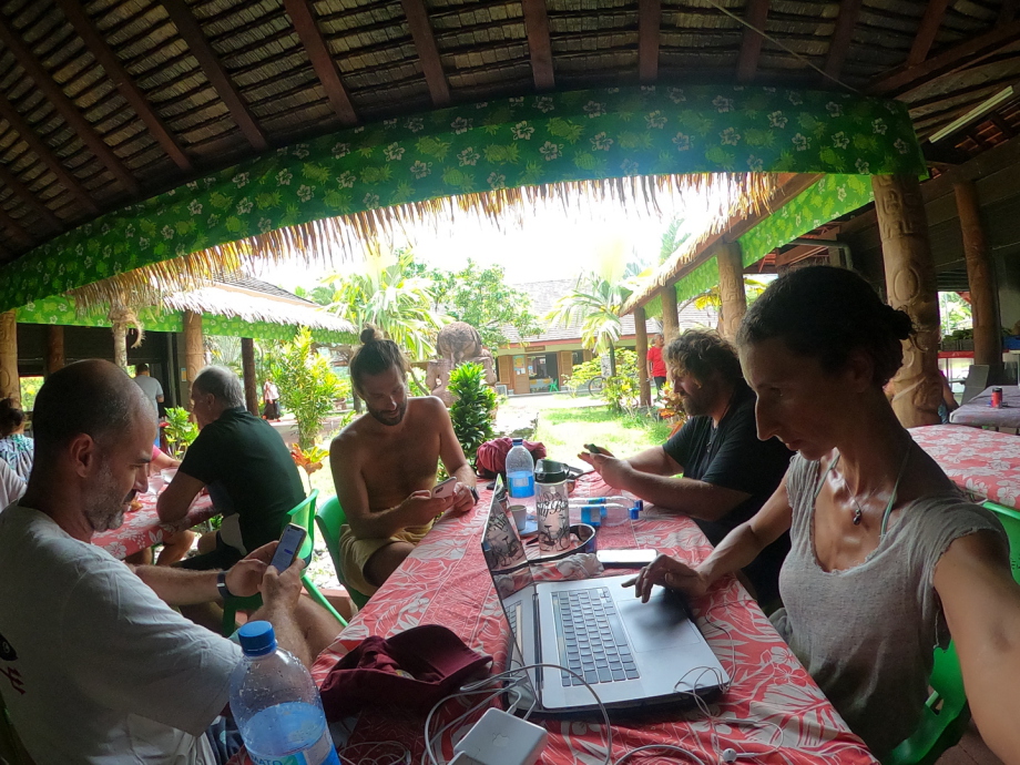 Les soirées apéro/ukulélé se sont carrément transformées en répétitions générales plusieurs fois par jour pour le futur concert aux Marquises du nouveau groupe « The Diatomeez »! Attention y’a du niveau! Le choix des morceaux doit être inattendu, un mélange de Jacques Brel, Angèle et les inconnus!