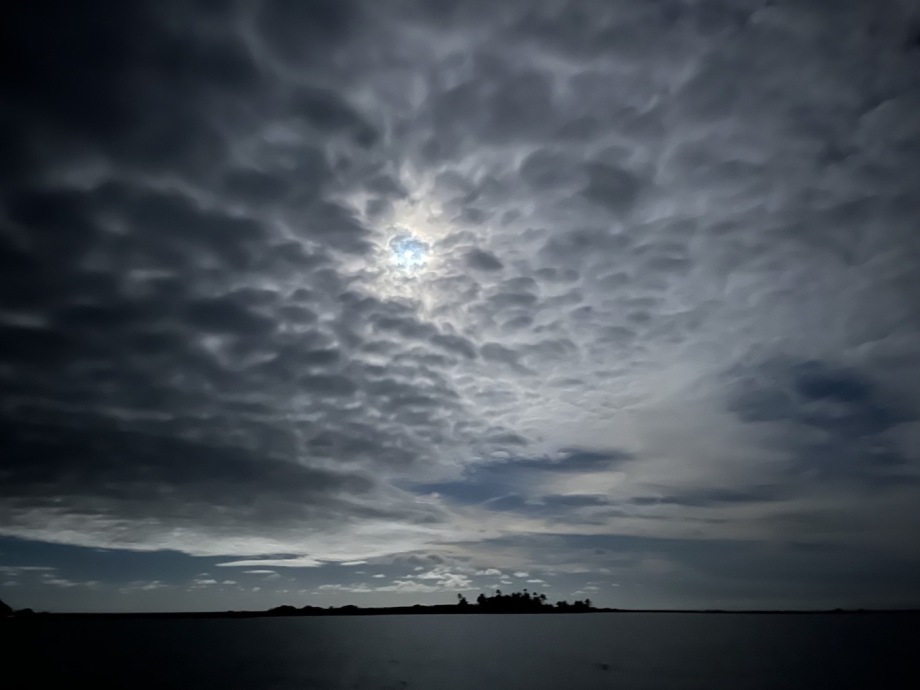 Cela ne retarde notre départ que d’une semaine seulement, puisqu’une nouvelle bonne fenêtre météo s’ouvre à nous pour partir vers l’est des Tuamotu. Il s’avèrera que ce sera la dernière fenêtre météo avant longtemps car le mara’amu (vent d’est) va s’installer pour toute la saison par la suite! Nous serons vent de travers toute la navigation ce qui est absolument idéal et nous avançons vite! Seulement il ne faut pas arriver trop tôt car nous devons traverser la passe de l’atoll de Tahanea aux alentours de mardi midi, quand le courant est rentrant, pour cela nous ne devons pas dépasser une vitesse de 6 noeuds et nous devons rentrer notre voile d’avant pour ralentir, ce qui psychologiquement n’est pas simple car arriver plus vite que prévu est normalement un énorme soulagement!