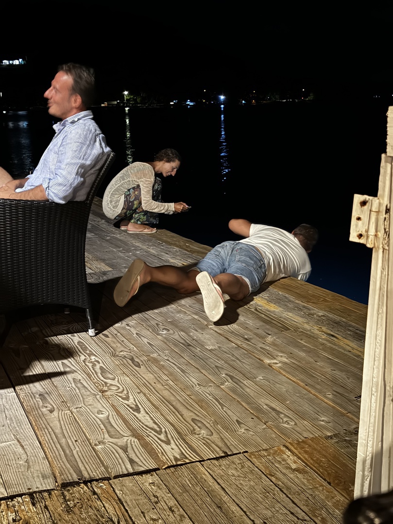 Le cours finit vers 19 heures, la nuit est déjà tombée. Je dois rentrer de nuit depuis la ville ce qui fait un long chemin. Pour bien me repérer j’ai pris notre iPad avec Navionics (GPS marin) et heureusement car j’avance dans l’obscurité. La pollution lumineuse est quasi nulle ici! Et le moteur puissant me fait aller assez vite dans le noir total c’est assez flippant! Je suis hyper hyper concentrée! Ma grande crainte c’est de me prendre une orphie dans la gueule qui bondirait hors de l’eau affolée par le Zodiac!