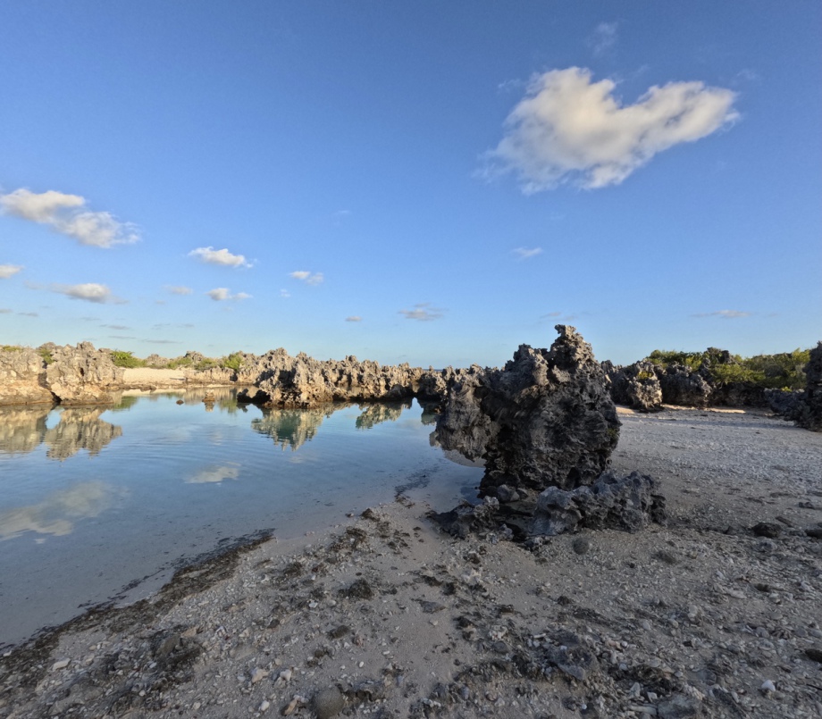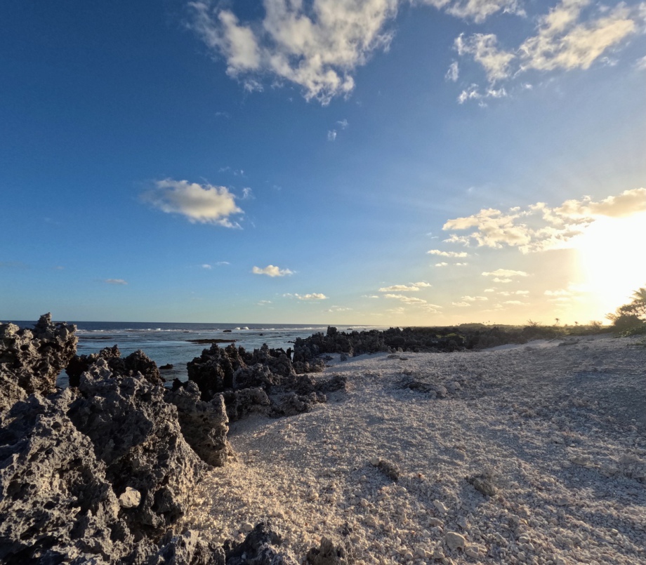 Les balades à pieds sur le récif sont aussi tellement belles! D’un coté des plages de sable rose et cocotiers, de l’autre, la roche noire épineuse du corail fossilisé et les vagues de l’océan extrêmement violentes…
