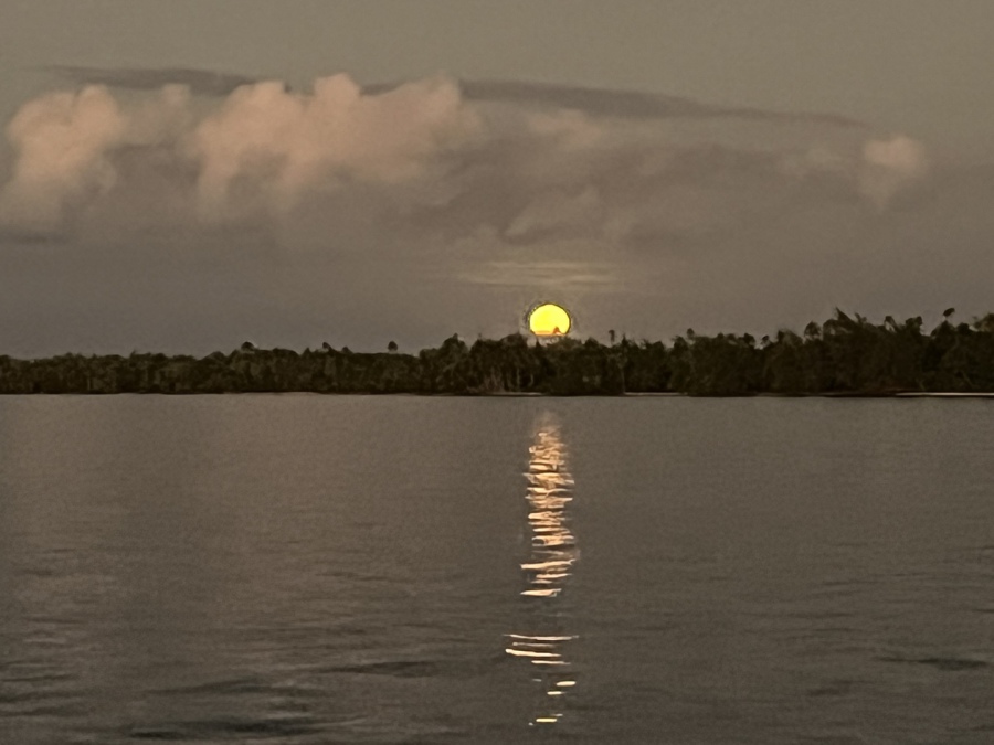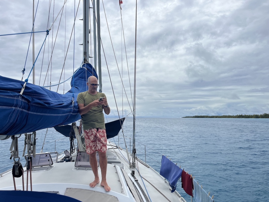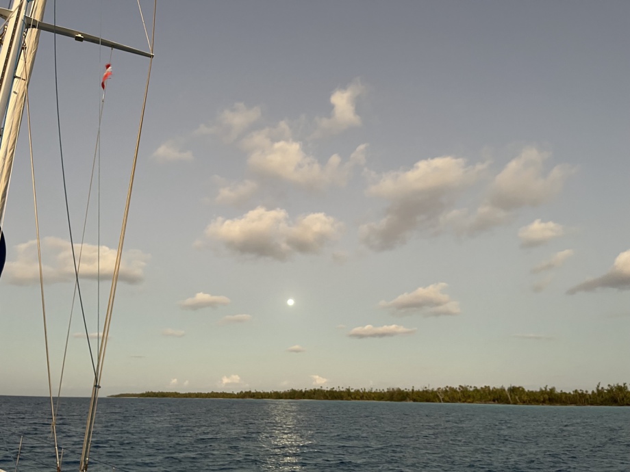 Mais le vent va fortement faiblir et nous allons avancer très lentement! Le positif, c’est que c’est une navigation très cool, sans stress, le négatif, c’est qu’on enchaine une deuxième nuit car nous arriverons à Moorea pas du tout dans l'après-midi comme espéré, mais à deux heures du matin! Nous posons l’ancre dans la nuit noire car nous sommes en pleine nouvelle lune. Soulagés, fatigués mais heureux!