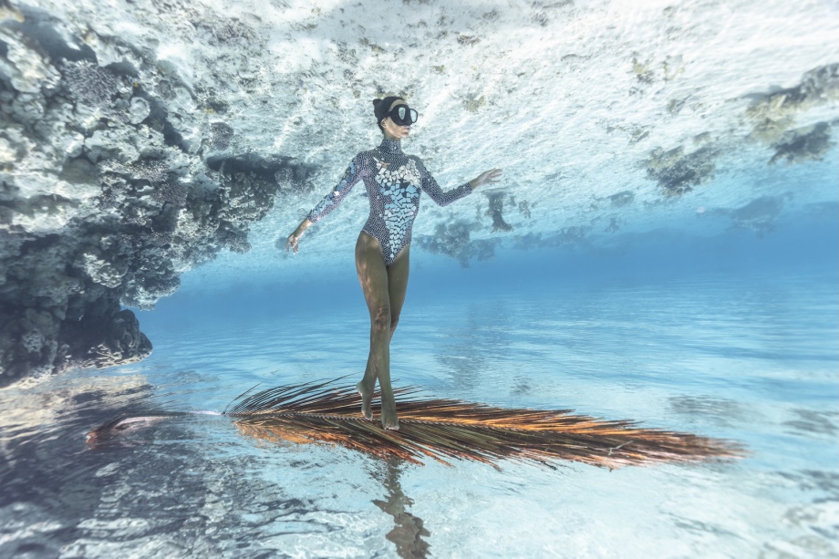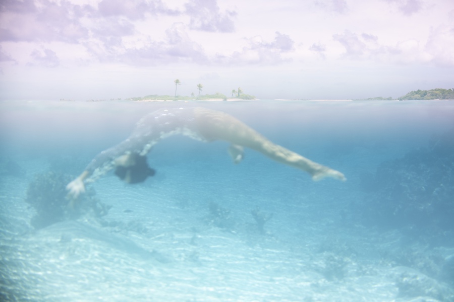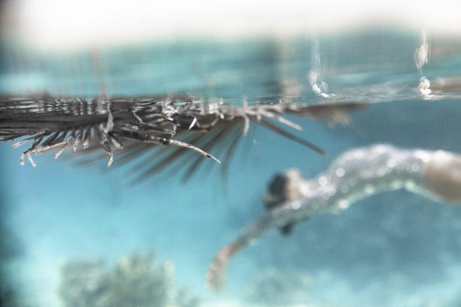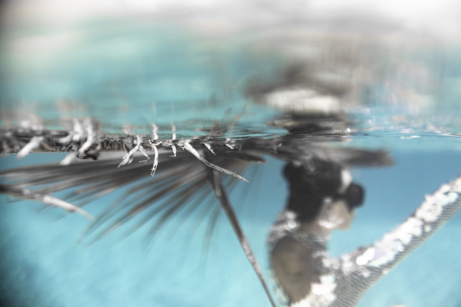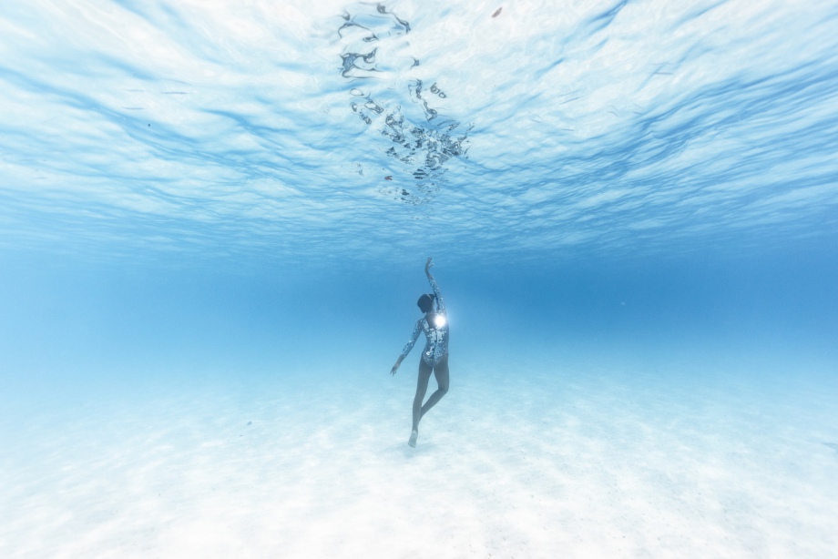 Nous essayons notamment de faire des images sous l’eau avec une boule à facettes! Mais cela ne fonctionne pas du tout car il faut un « mur » pour que la lumière se reflète, sur le sable ou la surface de l’eau, ça ne fait absolument rien!