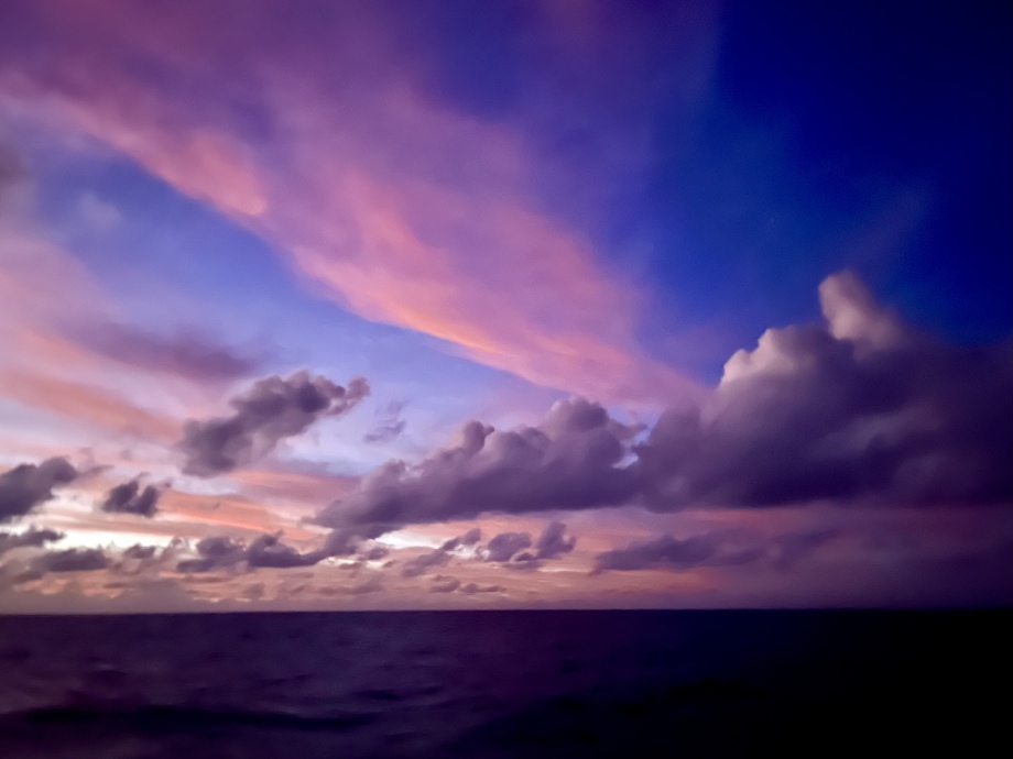 Nous subissons énormément ces journées fatigantes… Les grains nous permettent de bien remplir à nouveau notre cuve d’eau douce ce qui nous réjouit! Mais ensuite les nuages n’apportent ni pluie, ni possibilité de faire des images, nous devons patienter…